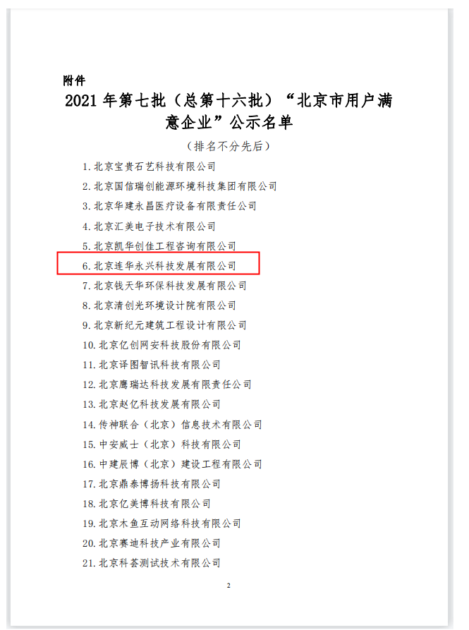 【仪器仪表网 厂商新闻】2021年9月3日,北京市社会企业质量协会发布了2021年第七批(总第十六批)“北京市用户满意企业”的通知。根据《北京市用户满意度认定规范》相关要求,经过企业自愿申报、资料初审、第三方满意度调查、专家组评审、公示公告,北京连华永兴科技发展有限公司光荣入选。