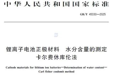 【仪器仪表网 政策标准】新国标《GB/T 45330-2025锂离子电池正极材料 水分含量的测定 卡尔费休库伦法》,已正式发布。该标准将于2025年9月1日正式实施。