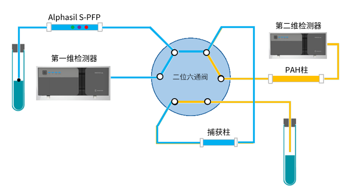其原理是将分离机理不同而又相互独立的两根色谱柱串联起来构成的分离系统,根据实验方式可分为全二维和中心切割二维。全二维液相色谱因其具有更大的峰容量,大多应用在复杂物质体系的分离分析中;中心切割二维因其具有更灵活的操作方式能达到更多的实验目的,比如目标物组分的分离分析、目标样品的净化浓缩以及脱盐处理等。