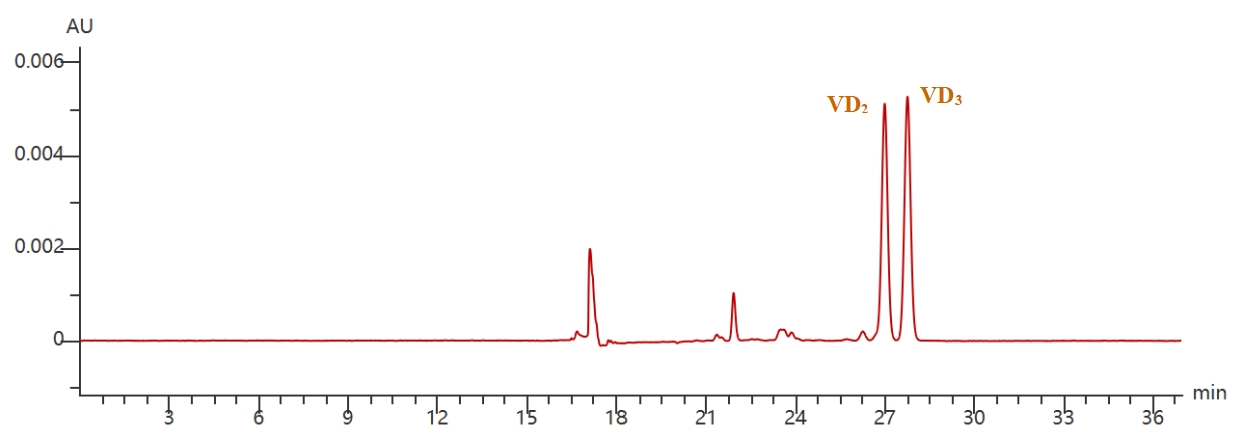 华谱科仪二维液相系统目前最常见的应用为:脂溶性维生素分析。该系统可使得用户同时满足国标食品中维生素D的检测方法(GB5009.296.2023)和现行的GB5009.82.2016关于维生素A,E的要求。