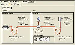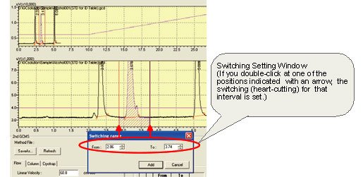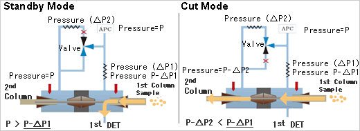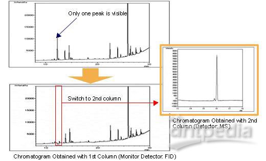 使用“MDGCsolution”工作站,在查看第一根色谱柱得到的谱图时,通过鼠标简易操作即可设定两根色谱柱的流量条件和切割程序。