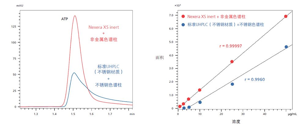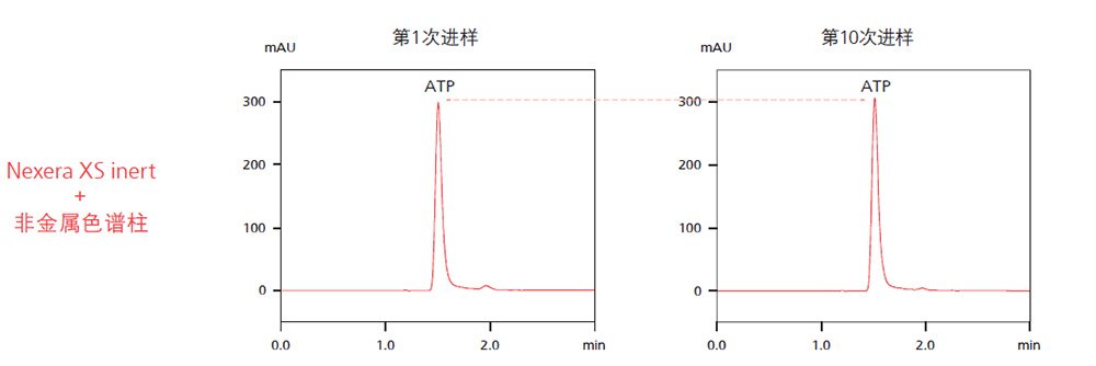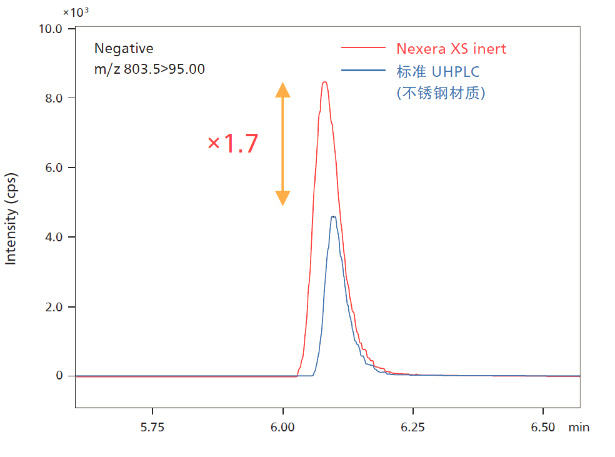 由于Nexera XS inert惰性管路,可准确检测到易吸附到金属材料上的寡核苷酸。