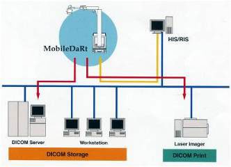 系统满足标准DICOM打印及传输,可以直接连接打印机或者将图像传输到PACS网络。只需要通过LAN线连接院内的网络,就可自动获得来自于HIS/RIS的摄影申请和患者名单等,极大地简化。