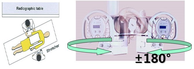 在控制面板上激活旋转按钮后,球管支架可以在垂直轴方向上进行自由旋转,并可在任何方向停止,从而进行准确迅速的定位操作。