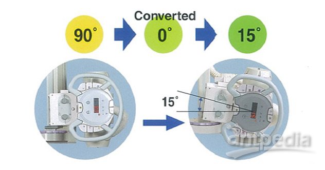 LED数字屏可以显示球管旋转的角度,并可以沿反向15度旋转