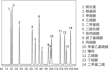 14种硫化物标准样品(各1ppm v/v)的色谱图