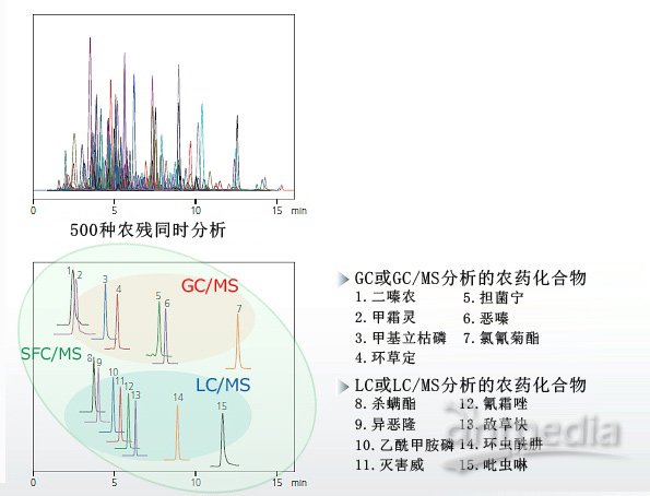 使用Nexera UC对上百种化合物进行同时分析。相比常规的LC及LC/MS和GC/MS等方法,Nexera UC可对不同极性的化合物进行分析。