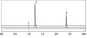 Sample | 1: Benzoic acid 2: Sorbic acid 3: methyl 4-hydroxybenzoate |