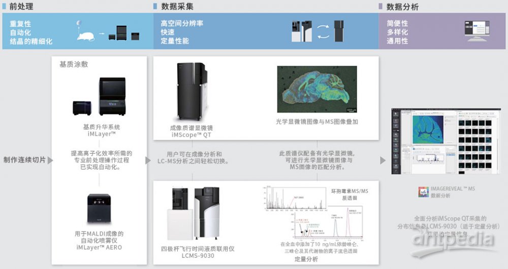 快速获取高精度•高空间分辨率的质谱成像图并进行有效的分析高精度、高速LCMS-9030*与高空间分辨率质谱成像相结合