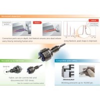 Nexlock 手紧接头,与采用刃环密封的传统方式所不同,新接头采用在管表面直接密封的方式。如此可以避免与色谱柱的连接处出现死体积,从而抑制色谱峰的拖尾情况。此外,该接头可以更加轻松的紧固/断开并且管材可更换。仅在手指紧固的情况下,即可耐受130MPa的压力,并且可以重复使用100次以上,因此非常适用于UHPLC系统。