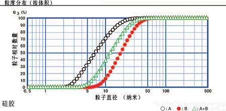 测量结果不受微量的污染物影响。(示例表明在粒径分布为50纳米的样品中混有1%的1-µm 粒子的测定结果)
