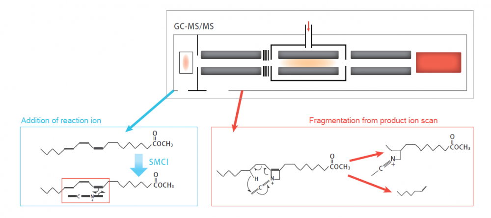 除分子量外,SMCI还可以提供结构信息。例如,使用乙腈作为具有TQ的反应气,可以确定不饱和脂肪酸中双键的位置。