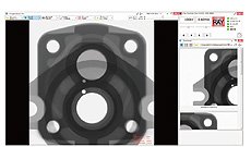对数个相同被检物进行检测时,预先登录被检测点,系统就可自动进行重复检察,能够大幅度提高检查效率。 此外,通过使用不同的夹具,可以同时搭载多个被检物进行有效的检查。 | 可自动检测图像内的空洞及异物,进一步减少人工作业量。 | |