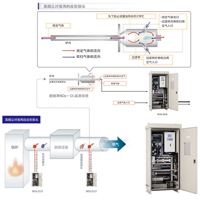 岛津自主研发的脱硝烟气排放连续监测系统采用直接抽取法采样、非分散红外吸收法测量烟气中污染物的浓度,包括NOx等多种烟气成分,克服了烟气脱硝监测存在的高温、高粉尘、高水分、强腐蚀、特殊气体等问题,为脱硝行业烟气连续监测提供了良好的解决方案,并为脱硝工艺中逃逸氨及催化剂的催化效率提供数据依据。
