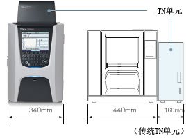 仪器宽度比岛津传统机型减小了20%,此设计可更有效利用实验室空间。即使增加了TN附件,仪器的宽度也没有改变。