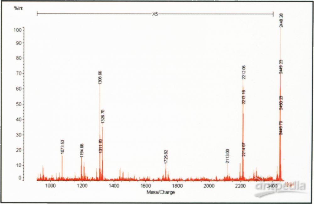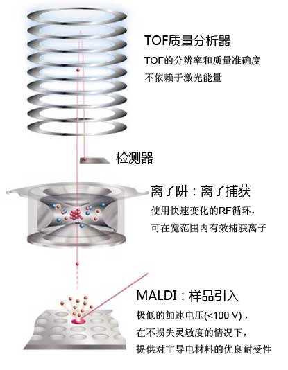 MALDI极低速加压(<100V),可接受非导电和非平面样品,不影响灵敏度