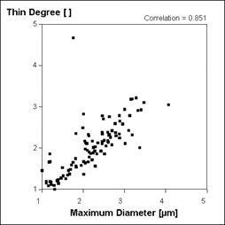 重心X 重心Y 绝对最大直径 宽度 水平费雷特直径 垂直费雷特直径 圆相对半径(除去孔洞) 圆相对半径(包含空洞) 平均半径 平均半径的偏差 重心间的最小距离 周长 颗粒圆周长 Z的最大值 Z的最小值 | Z的平均值 颗粒周边的Z的平均值 除去孔洞的面积 包含孔洞的面积 表面积 体积 方向 2次元惯性力矩的主轴角度 占有率 面积率 扁平率 圆形程度 凹凸程度 针状程度 | 平均 标准偏差 平均长度 平均面积 平均体积 合计 最大值 最小值 标记最大值 标记最小值 范围 颗粒数 |