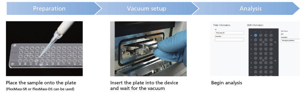 样品制备后可立即开始测量,轻松进行MS分析,插入样品板后仅需5分钟即可抽真空,开始分析。