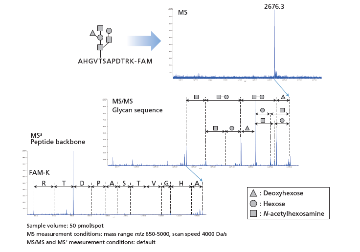 通过MS,MS / MS和MS3测量合成的O-连接的糖肽,可以从MS / MS数据中找到聚糖序列,并且可以从MS3数据中找到肽骨架的氨基酸序列。