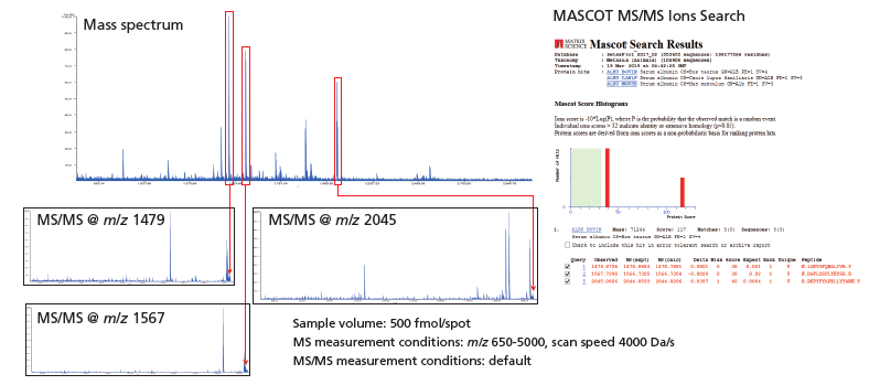 通过对蛋白质消化进行MS和MS / MS测量,可以确定蛋白质的鉴定。