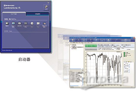 LabSolutionsIR备有再解析、谱图测定、定量测定等与FTIR分析匹配的程序。从LabSolutionsIR启动器便可轻松启动这些程序。LabSolutionsIR启动器可登录、启动经常使用的Windows应用程序、制作的简单宏程序。