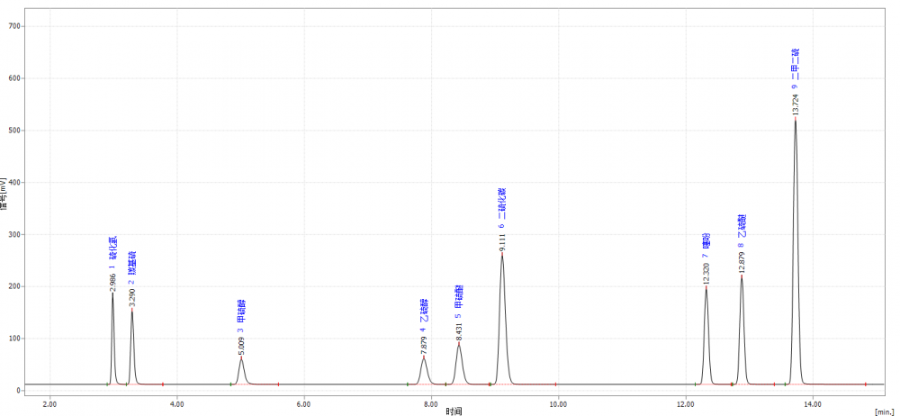 *采用多阀多柱、中心切割技术、高性能进口色谱柱,通过一次进样完成硫化物快速分析。