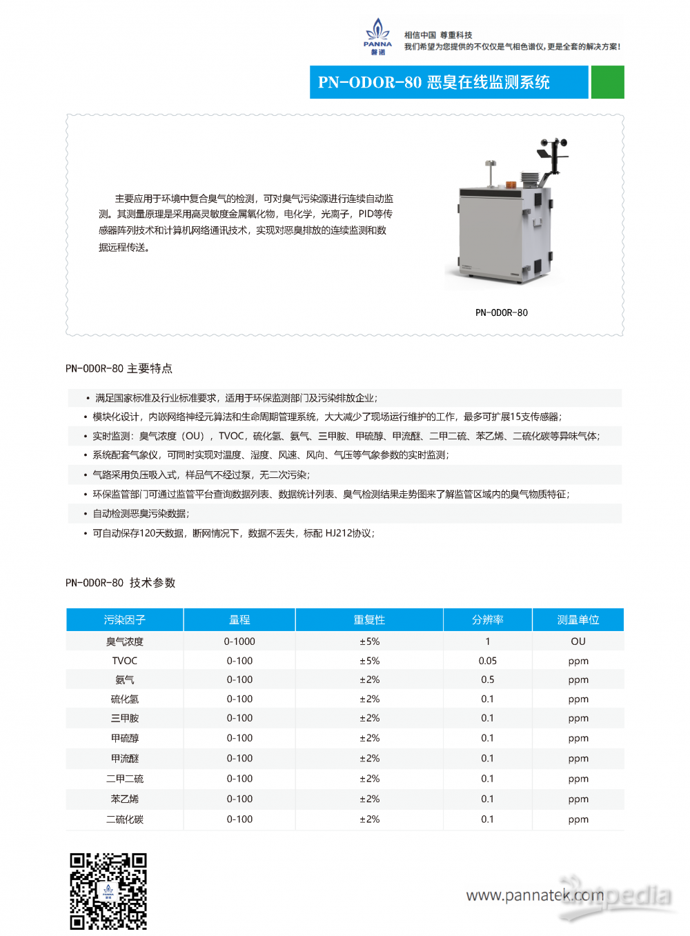 磐诺PN-ODOR-80 恶臭在线监测系统主要应用于环境中复合臭气的检测,可对臭气污染源进行连续自动监测。