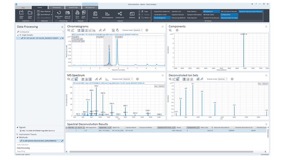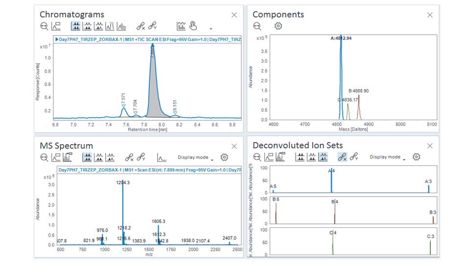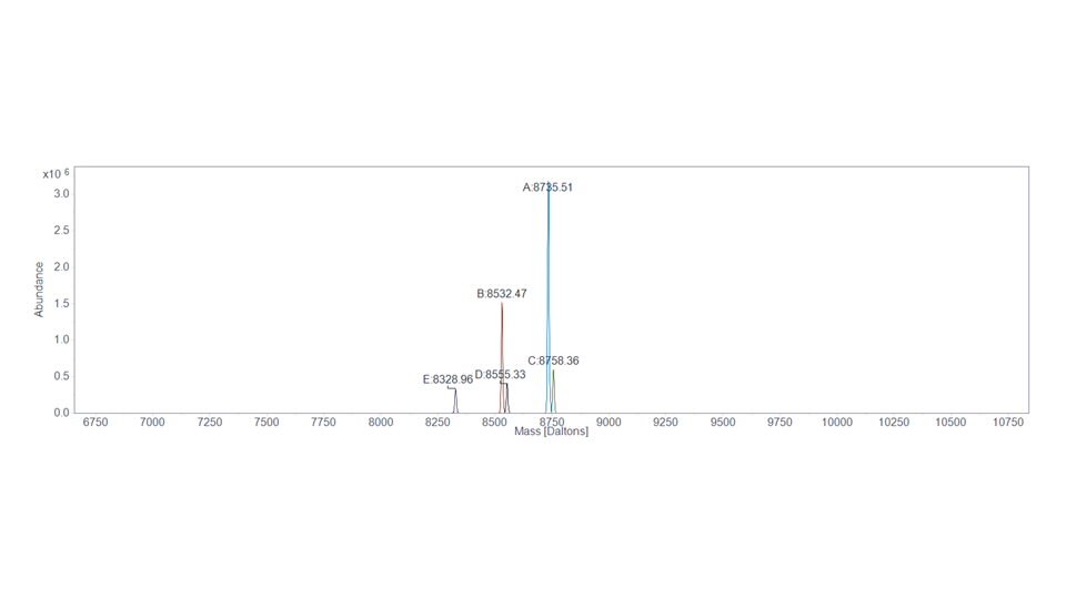 使用 OpenLab CDS 中的自动谱图解卷积功能进行批量分析,快速确认大分子的分子量并评估其纯度。将从多肽、寡核苷酸和蛋白质中获得的复杂谱图转化为重要信息,帮助您攻克棘手样品的分析难题。