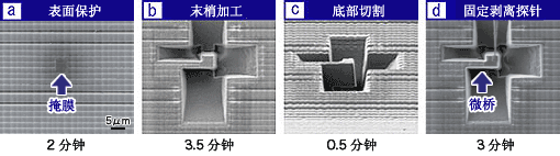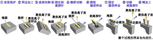 微型采样方法(已在日本和美国取得专利)已在半导体器件分析领域成为一款工具,它正迅速向更小制样方向发展。仅用一小时左右即可获得一个微小样品,以便于STEM分析,其定位精度可达到0.1 µm以下。