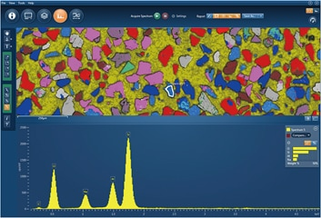 AZtecOneGo面分布分析示例不仅可以收集一般的谱图,还可以根据面分布数据重构任意区域的谱图。可选形状有点、矩形、椭圆、自绘图形。