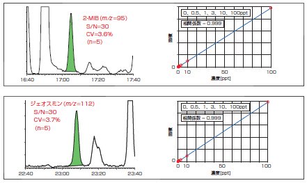 通过进一步提高日本电子的引入式透镜技术,SCAN模式下,灵敏度达到最高的S/N=1000:1 (1pg OFN)。在SIM模式下,仪器的检出限达到10fg OFN,甚至更低。