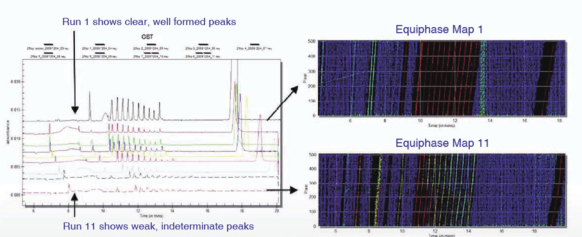 上面的图片似乎表明该产品已降解,但是等相位图显示,是因为分离条件发生了变化