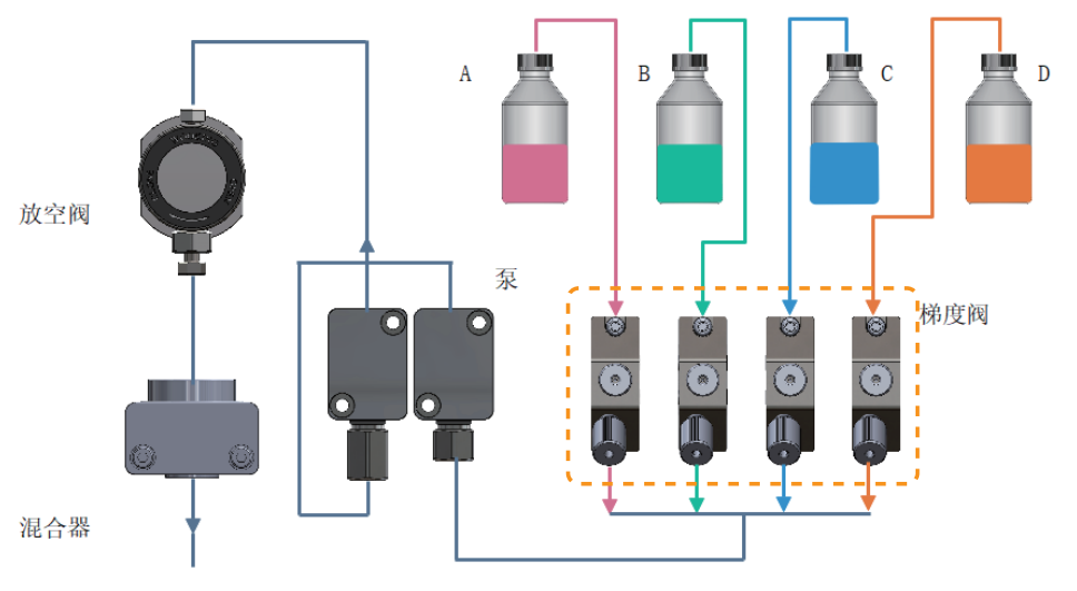 ► 精密往复柱塞式串联输液泵,配合压力动态抑制算法和螺旋交叉对冲混合技术,确保稳定的送液速度和精准的梯度比例,以使得保留时间RSD在0.2%以内。
