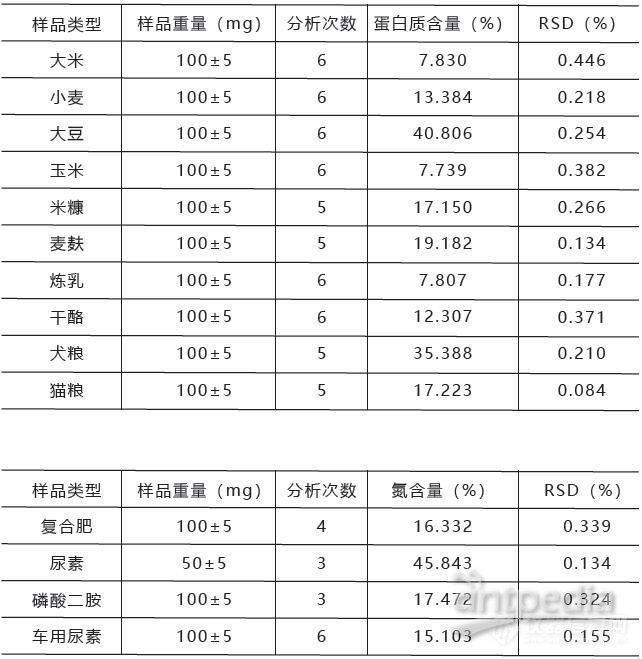 重复误差(RSD) | ≤0.5%(150mg的10%氮标准品) |