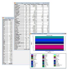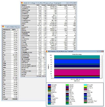 AMCS-Mining自动矿石特征分析系统可实现的功能有:矿物颗粒的尺寸及面积、组成矿物颗粒的每一单体矿物颗粒的面积、单体矿物颗粒的颗 粒边界、单体矿物颗粒的X射线图谱;自动矿物分类,根据单体矿物颗粒的X射线图谱,确定单体矿物颗粒的矿物成分;经矿物分类的样品测量信息通过计算可得到 各种样品测量结果,包括样品的矿物组成,矿物颗粒及矿物单体颗粒的矿物组成,样品的元素组成,矿物颗粒及矿物单体颗粒的元素组成,矿物元素的分布,矿物颗 粒及矿物单体颗粒的分布,矿物颗粒及矿物单体颗粒尺寸、形态、比重信息,矿物及剂矿物元素回收率及品味估算,矿物生存关系,矿物矿相表面积比,矿物的连生 关系,矿物的解离度等信息。