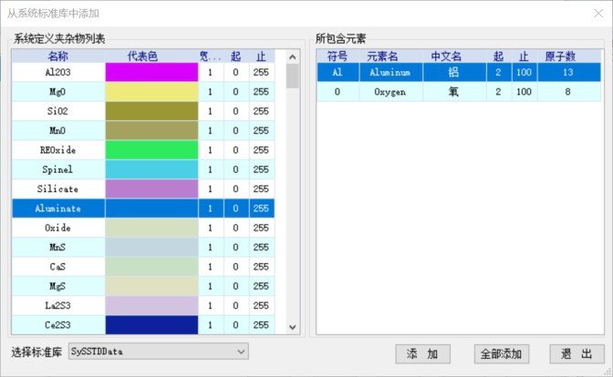 5.Field视域的计算及拼接,坐标的转换6.颗粒标准库的管理,准确识别颗粒类型,保留扩展可能可以从系统库导入用户分析库,也可以从元素周期表与用户手动添加、编辑分析库信息