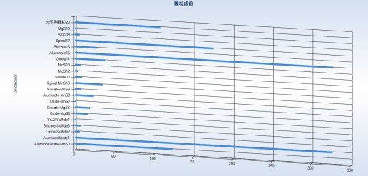2.图像化显示测量结果分布图显示夹杂物 显示夹杂物在分析区域的分布、放大显示夹杂物实际形貌、用鼠标指向夹杂物显示夹杂物的信息包括 x-ray 图谱、 只显示关心的颗粒、移动电镜到分析颗粒排列图显示夹杂物 按规律排列图显示夹杂物、夹杂物种类、夹杂物尺寸、用鼠标指向夹杂物显示夹杂物的信息包括 x-ray 图谱、 只显示关心的颗粒、移动电镜到分析颗粒、