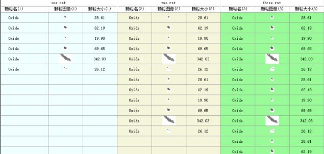 详细的颗粒面积、分类,尺寸、元素占比信息。 以不同的颜色,进度代表数据更直观。 对多个测量信息进行对比,使质量监控更精准。