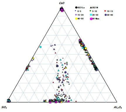 4.能够对复合夹杂物中的各种相进行精确辨别,分析结果可直观显示在包含氧化物、硫化物、氮化物等七大类多元相图中。