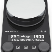 全新的IKA Plate (RCT digital)使用了铝合金材质的圆形盘面。它的最大搅拌量为20 L(水),转速范围50-1500 rpm。