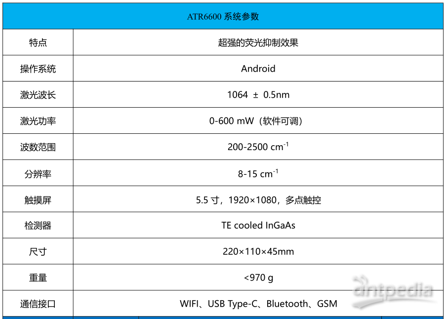 ATR6600是一款超荧光抑制的1064nm手持拉曼光谱仪。基于1064nm激发光本身的超高荧光抑制效果,特别适合于高荧光产品的检测。