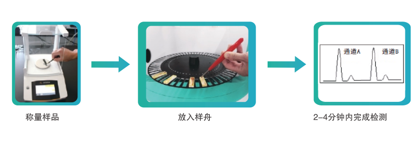取样———自动进样———约5min得到两个检测数据———样品检测效率 2.5min/个