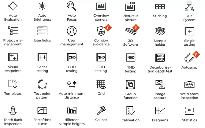 Qness 60 M/A+/标准交货范围含所有维氏测试方法 ✓ Qness 10 M/A+标准交货范围为HV0.02-HV10