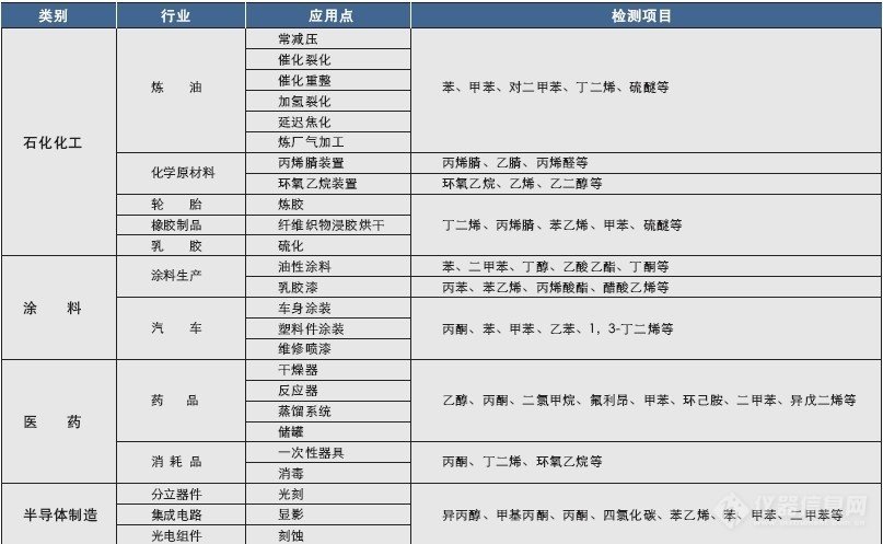 CEMS-2000 B VOC烟气排放连续监测系统(挥发性有机物)广泛应用于各种固定污染源有机物排放的实时监测,例如炼油企业、制药企业、化工企业、汽车企业、半导体企业、制革企业、铸造企业以及油品的存储、运输和加油站等各个领域。通过对测量主机不同的内部配制,例如定量环与浓缩管、常温富集与冷凝阱富集、填充柱与毛细柱、恒温炉与程序升温炉、FID与PID检测器等的选择可以实现单组份、多组份或不同物质的分析需求。通过配制不同的预处理系统,还能实现对水源或土壤中挥发性有机物的监测。主要监测项目为:苯、环氧乙烷、环氧丙烷、丙烯腈、1,3-丁二烯、苯乙烯、氯乙烯、二氯乙烷,以及其他需要监测的有毒碳氢化合物。