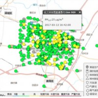 大气污染防治网格化监测平台实时展示网格化点位各污染物浓度值及相关气象信息,数据更新周期/min。