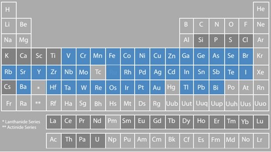 Xact 920水质监测系统能识别和测量65种成分,这些成分在上述表格中已加亮标出。Xact 920能监测在表格中用灰色标出的成分,但其定量主要取决于溶液浓度。