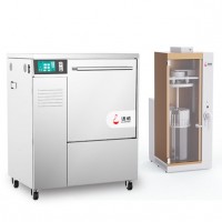 手工清洗手上的油污可能附在器皿上,增加洗刷的困难,洗瓶机清洗采取自定清洗、自动漂洗、自动烘干的方式,无二次污染。