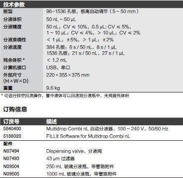 zei新一代 Multid rop自动分液器家族产品,具有无可匹敌的可靠性和易用性,可以满足药物研发和生物技术实验室对微量分液的要求。Combi nL的分液范围从 50 纳升至 50 微升,尤其适合小体积 5 ~ 20 μL范围的分液,具备极高的分液精度和极低的CV值,可以对96 孔板至1536 孔板进行快速、精确的分液。