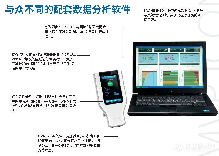 MVP ICON是一款开创性系统,用于测量和记录消毒剂和清洗剂浓度/电导率、pH、温度和ATP等重要的HACCP参数,并提供多种全新管理工具,确保HACCP程序的有效执行。该MVP ICON的软件围绕质量体系管理进行设计,能对HACCP管理程序所必需的关键程序指标进行实时截图。