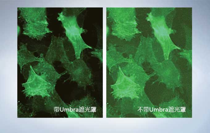 “Umbra遮光罩”专为CKX53的荧光观察而特别设计。 该遮光罩能够有效阻挡室内光线,提高荧光对比度,并可在明亮条件下获得清晰的荧光观察效果。 在使用相衬时,Umbra遮光罩可升起,让光线通过照射到样本上。